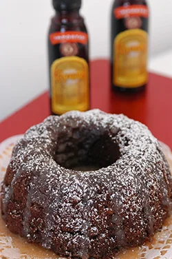 A soft, rich, chocolate cake spiked and glazed with Kahlua
